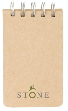 Features : Spiral bound 5" x 3" hard-cover jotter with side elastic pen loop and 80 ivory lined sheets made from 72% recycled material (non-refillable).